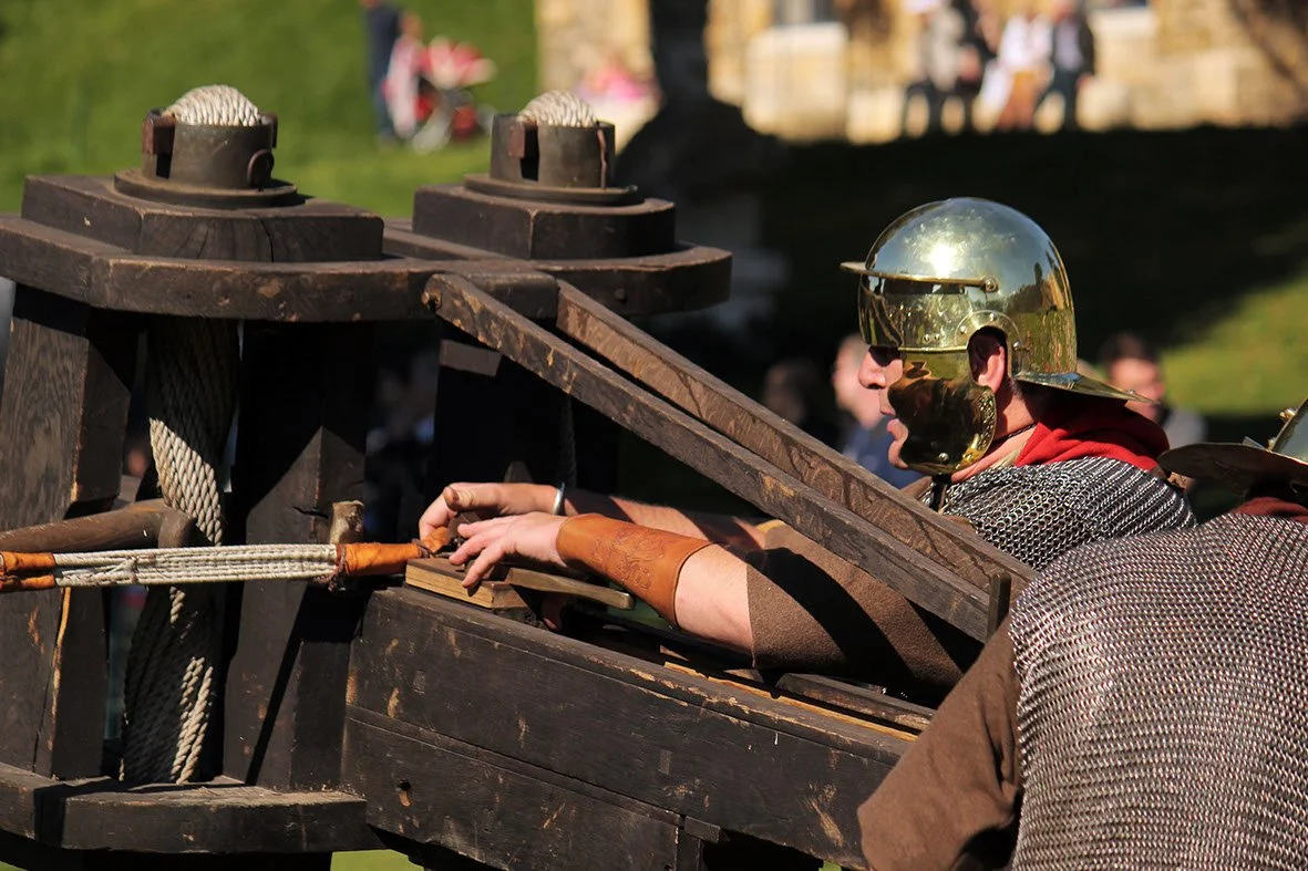 Artillery were essentially torsion weapons. They used animal sinew and hair braided together to make torsion- springs